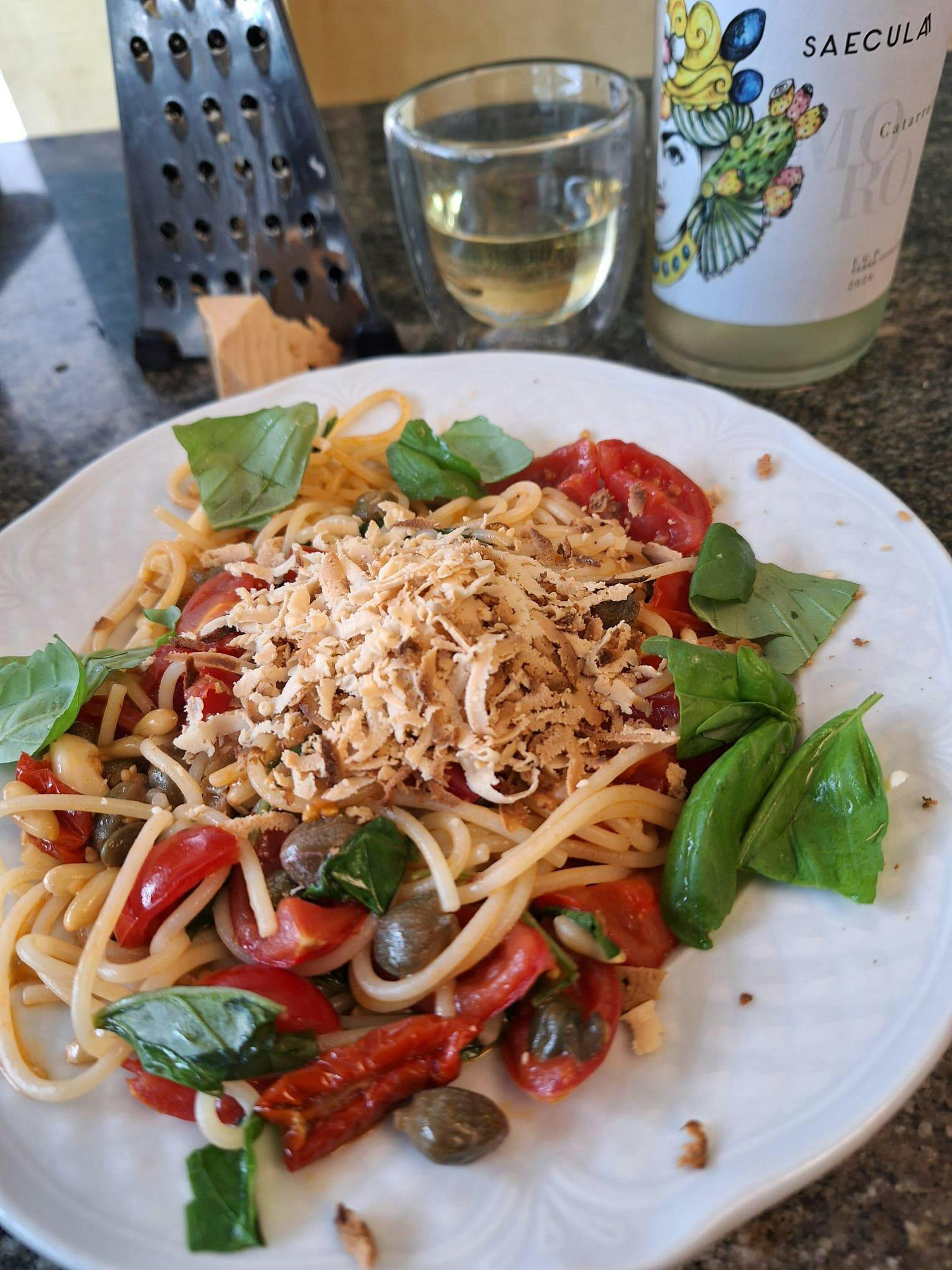Spaghetti realizzati con semola di grano duro 100% siciliano. Lavorati artigianalmente, sono trafilati al bronzo per offrire una superficie ruvida e porosa, perfetta per trattenere qualsiasi tipo di condimento, dal più semplice al più elaborato. L’essiccazione lenta a bassa temperatura mantiene inalterate le proprietà nutrizionali del grano e dona alla pasta un sapore intenso e autentico.